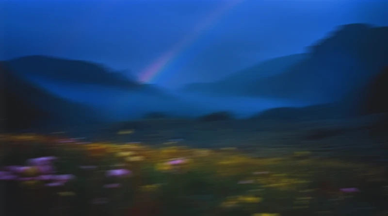 Black, unisex t-shirt featuring "What Now" logo artwork printed on front in rainbow colorway.